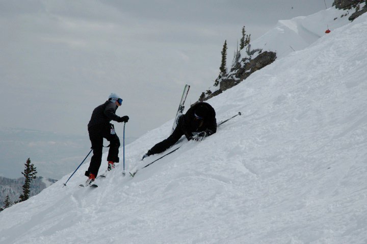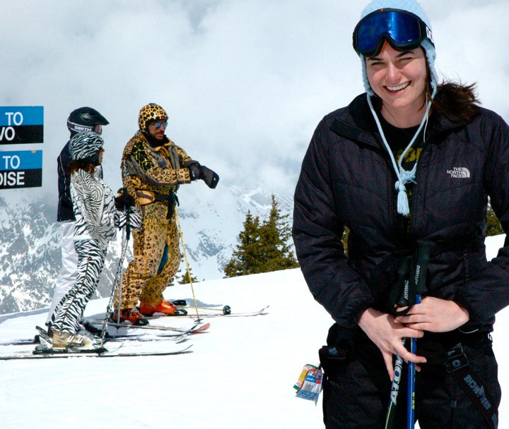 So they have a foot of fresh the week before, and 6 feet since, but at least we got to see the sights, margaret learned that the first turn is the hardest (Lally tried to be helpful to her mother while laughing hysterically) and not to fall off the traverse while looking for a line in a bowl – see that peak over Megan’s shoulder in the next to last pic, follow the traverse left all the way over, yep that’s the line – and the fashionista’s came out. We thought for a minute that Evelyn and Andy were with us. Excellant family adventure; bowls have it all over beaches. Btw Margaret still had legs while her daughters had retired to the spa.