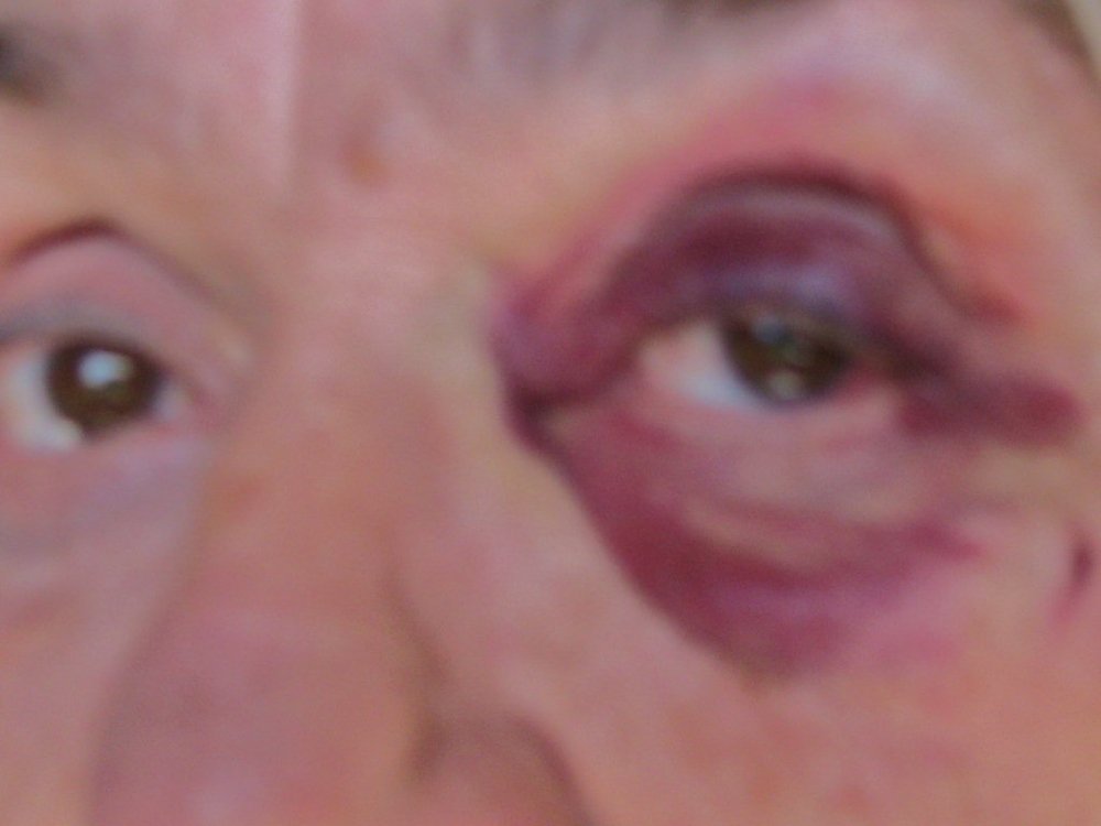 Says she slipped and fell. Don’t know, isn’t denial the first stage; thinking maybe should give grandparent services a call.